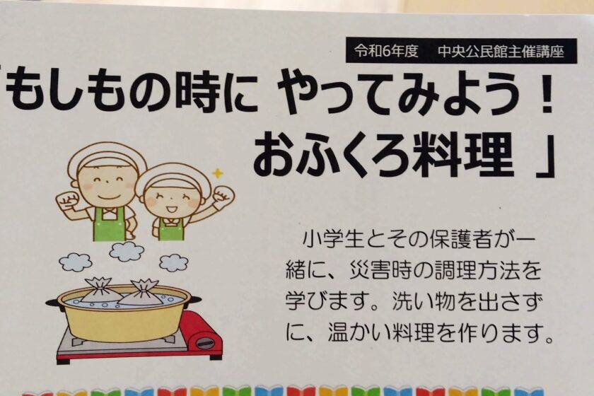 熊本市中央公民館主催親子防災講座で、徳山が防災料理講座をさせていただきました