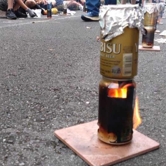 サバメシとは、空き缶と牛乳パックを使ってごはんを炊くというもの。